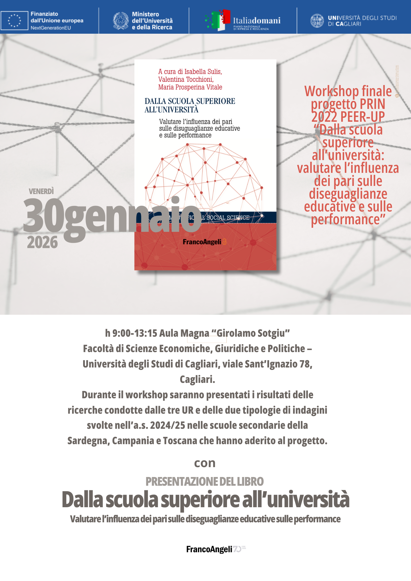 Nel contesto del Workshop  finale progetto PRIN 2022 PEER-UP “Dalla scuola superiore all’università: valutare l’influenza dei pari sulle diseguaglianze educative e sulle performance” presentazione del volume