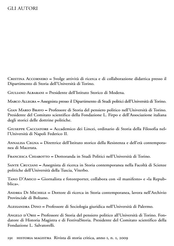 , Gli autori in "HISTORIA MAGISTRA" 1/2009, pp 191-192, DOI: 10.3280/HM2009-001026