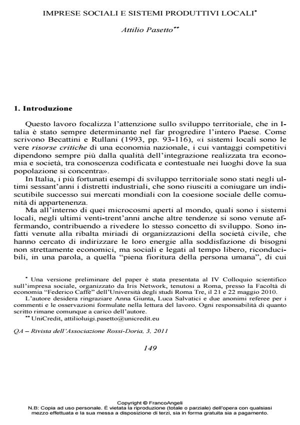 Attilio Pasetto, Imprese sociali e sistemi produttivi locali in "QA Rivista dell’Associazione Rossi-Doria" 3/2011, pp 149-166, DOI: 10.3280/QU2011-003007