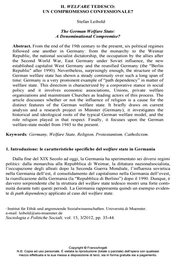 Stefan Leibold, Il welfare tedesco: un compromesso confessionale? in "SOCIOLOGIA E POLITICHE SOCIALI" 3/2012, pp 35-44, DOI: 10.3280/SP2012-003004