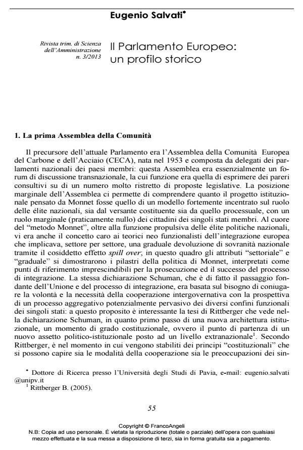 Eugenio Salvati, Il Parlamento Europeo: un profilo storico in "RIVISTA TRIMESTRALE DI SCIENZA DELL’AMMINISTRAZIONE" 3/2013, pp 55-75, DOI: 10.3280/SA2013-003004